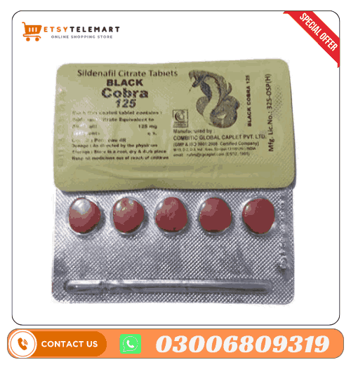 Buy Black Cobra Tablets in Pakistan online at Etsytelemart.com.pk. Original Sildenafil Citrate tablets for erectile dysfunction, timing, and stamina. Best price, fast delivery, and customer support – Order now!